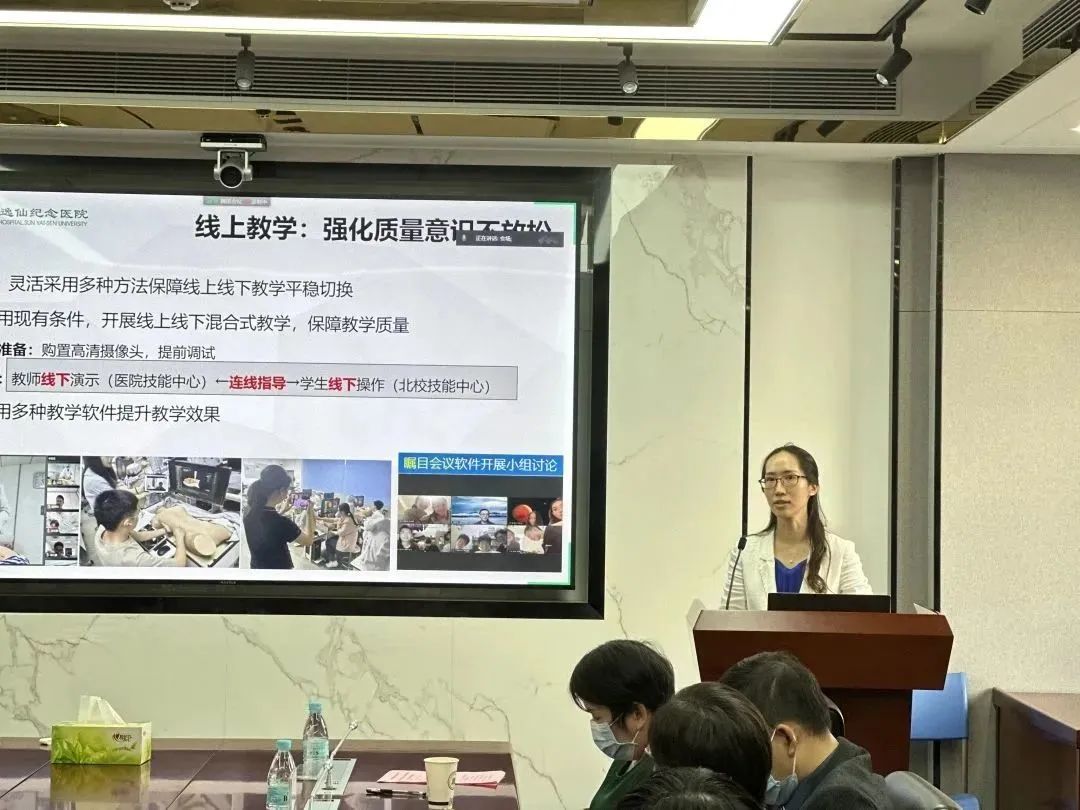 孙逸仙纪念医院教学科青永红科长、附属第三医院任杰副院长、中山眼科中心卓业鸿副主任、附属口腔医院林正梅副院长、附属第五医院肖非副院长先后分享各自医院临床教学的现状、经验与工作计划。孙逸仙纪念医院以常态教学质量建设为根本,强化质量意识不放松,严抓集体备课、八年制学位论文等工作,在疫情期间灵活采用多种形式保障线上线下教学平稳开展,并在儿科率先开展“叙事医学”试点教学改革。附属第三医院在临床师资队伍建设上坚持有方向、有能力、有热情,使临床教学成为教师感到光荣、受尊重的工作;推进临床教学管理体系改革,成立教学部,整合原教学科、研究生科、继教科、技能中心等部门;加快搭建5G智慧教学平台,助力医学人才培养。中山眼科中心紧密结合学时少但内容多、时间紧、要求高的眼科临床教学特点,邀请学校副书记余敏斌教授出席集体备课,将眼科临床见习做出特色;大力投入教学资源,为师生配置眼底检查模拟器、手术模拟器等高值教学设备;在疫情期间力争线上教学同质化,并在课后开展PDCA持续改进,加强师生互动。附属口腔医院积极搭建医工融合教学平台,信息化赋能口腔教学,推进智慧课堂建设;开设8门在线专业课程,点击量达一万六千人次;为学生开设自助式教学实验室,学生可自由预约学习。附属第五医院统筹教学资源,成立教育处,统筹本科、研究生、继续教育及技能中心管理,开展形式丰富的“大思政课”、学生征文等活动;医院邵晶晶老师获学校第十届教师教学竞赛特等奖。