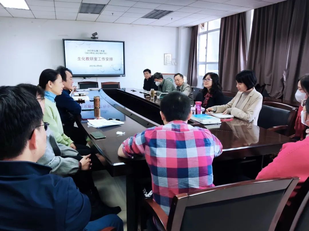 2023年2月16日上午,生物化学与分子生物学教研室在科技楼北701备课室召开2022~2023学年第二学期第一次集体备课会,备课会由生物化学与分子生物学学系主任高国全教授和系副主任、生物化学与分子生物学教研室主任杨霞教授主持。