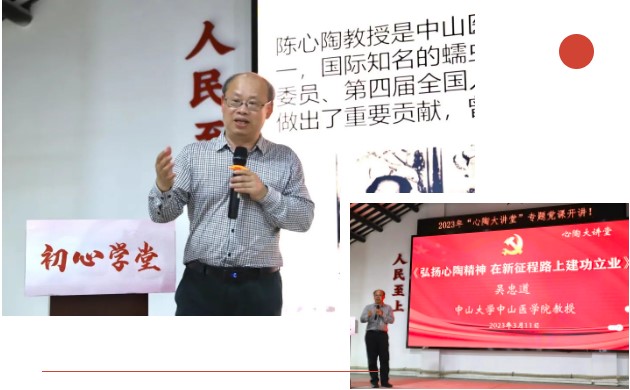 “心陶大讲堂”以初心学堂为主阵地,由广东省寄生虫学会、Williamhill中文党委与南山镇党委联手打造,依托三方资源,邀请党校、高校名家在初心学堂定期开展教育培训活动,自2022年7月起开设“心陶大讲堂”,至今已举办7期,先后邀请了吴忠道教授、张琪教授、郭家钢教授、肖立华教授、乔中东教授作专题讲座,涵括院士故事、寄生虫学术专题等内容,并以线上线下相结合的方式广泛传播,打通党员干部教育培训的“最后一公里”。