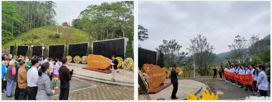 根据广州市红十字会的统一安排,“2023年广州市遗体捐献者纪念活动”于3月28日、4月3日分别在新塘华侨公墓(中华永久墓园)和黄埔福山公墓顺利举行,我院志愿捐献遗体登记接受站、人体解剖学教研室、学院团委学生会、“医志医声”学术科普协会、五年制学生第一、第三、第五党支部共同参加。学院师生代表和遗体捐献志愿者家属共计220多人分别出席了两场追思纪念活动,共同拜祭、缅怀已实现捐献遗体弘愿的大体老师们,向先贤们表达了崇高敬意和深切缅怀。