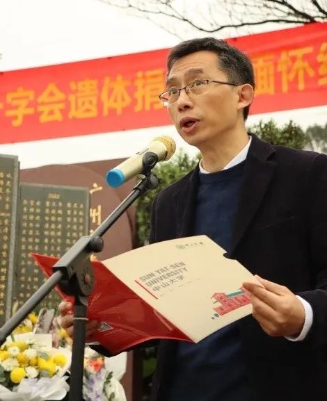 广州市红十字会副会长姜华同志代表广州市红十字会发表讲话。姜会长指出,捐献遗体志愿者在生命终点时,将自己的身体奉献给了医学公益事业,使生命的价值得以升华。遗体捐献者以自愿捐献遗体的高尚行为,为人类攀登医学高峰提供了基石,也为促进精神文明和社会进步做出了积极贡献。“人道、博爱、奉献”的红十字精神,因遗体捐献者的善举和大爱得以弘扬,人类生命的长河因他们而更添光彩。向不朽的遗体捐献者致以最崇高的敬意!
