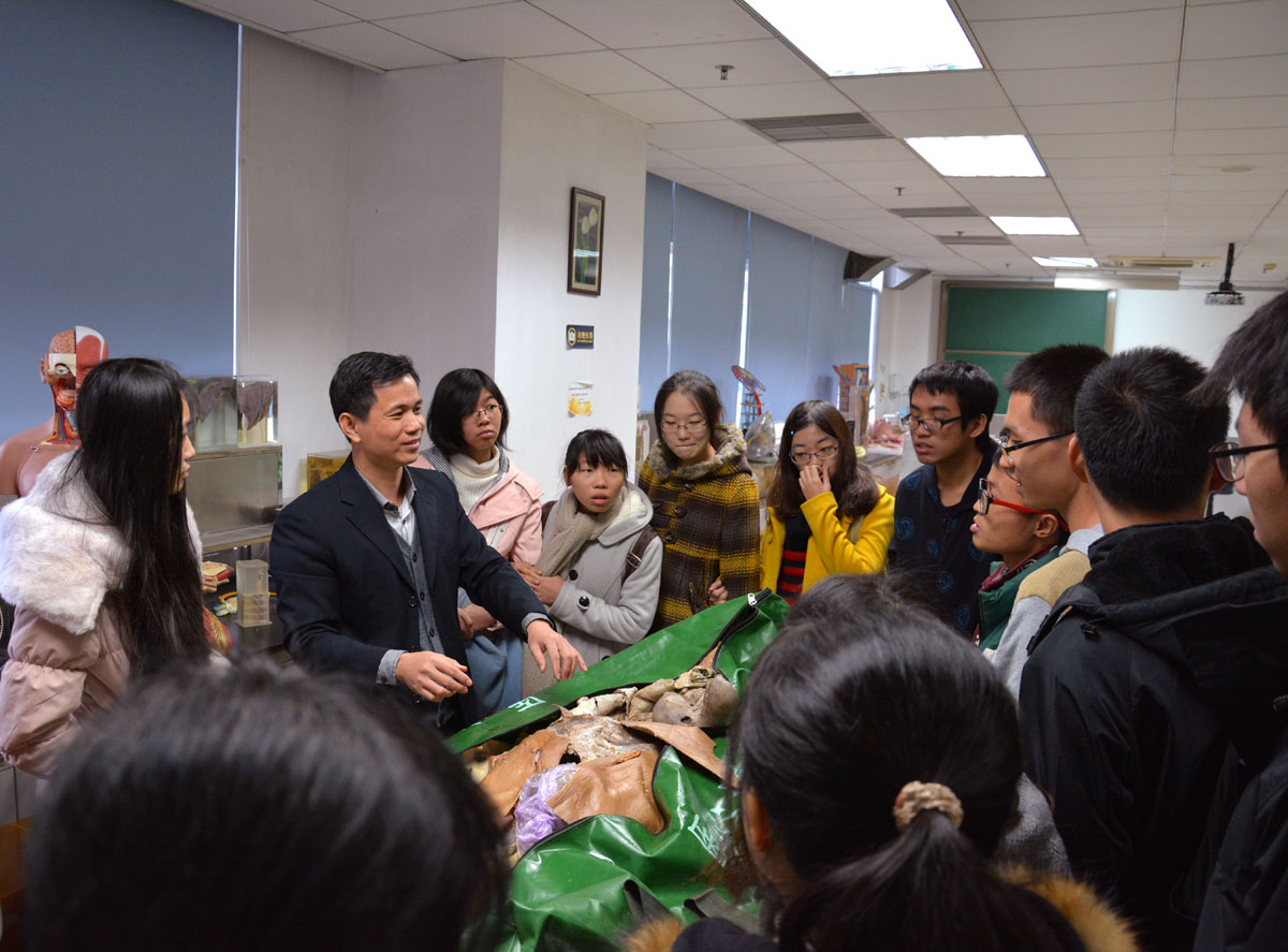 2013年12月20日,医学实验教学中心党支部与结对长学制南校区党支部开展“医学知识宣传活动”。 南校区长学制党支部成员一行20人参观了医学标本馆、人体解剖学实验室,医学实验教学中心支部党员、标本馆工作人员为大家介绍了相关医学学科情况。