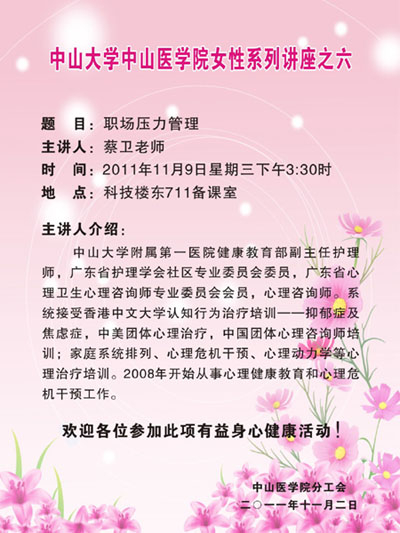 导航痕迹 william威廉英国医学教学实验中心 信息发布 新闻通知 Williamhill中文女性系列讲座之六 Williamhill中文女性系列讲座之六 发布人:基础医学国家级实验教学中心 发布日期:2011-11-04