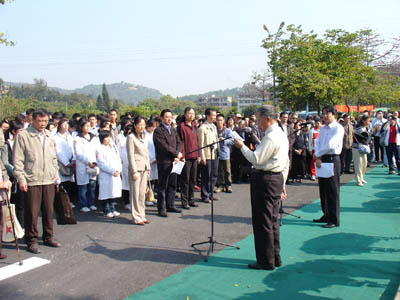 为了表达对遗体捐献者奉献精神的崇高敬意,更好地宣传这种无私奉献的精神,鼓励更多的市民加入志愿捐献遗体的行列,广州市红十字会于4月1日上午在广州新塘华侨公墓举行广州市遗体志愿捐献者追思纪念活动。出席活动的有广州市政府副秘书长、市红十字会副会长赵南先,广州市红十字会副会长欧阳炳惠,以及市卫生、民政、公安、司法等部门的代表,各区、县级市红十字会代表,登记接受站的代表,学生代表,遗体捐献者亲属等约400多人。其中我校组织的志愿捐献者亲属及师生代表共有159人。