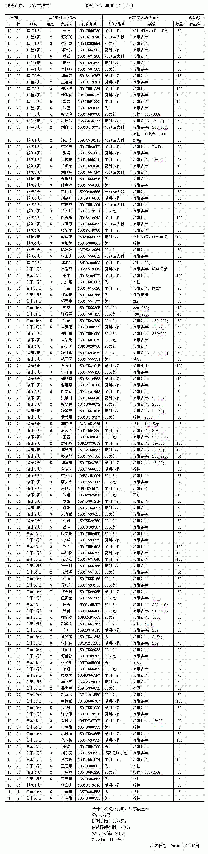 导航痕迹 william威廉英国医学教学实验中心 信息发布 新闻通知 2010学年第一学期探索性实验动物领取表 2010学年第一学期探索性实验动物领取表 发布人:基础医学国家级实验教学中心 发布日期:2010-12-15