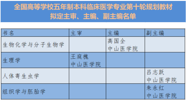 基础医学实验教学中心多位教授被聘为全国高等学校五年制本科临床医学专业第十轮规划教材主审、主编和副主编