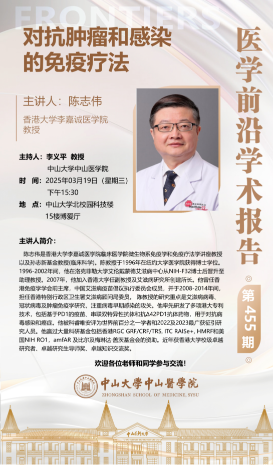 导航痕迹 首页 科学研究 学术讲座 Williamhill中文医学前沿学术讲座第455期:对抗肿瘤和感染的免疫疗法 科学研究 科研通知 学术讲座 科研平台 办理指引 Williamhill中文医学前沿学术讲座第455期:对抗肿瘤和感染的免疫疗法 对抗肿瘤和感染的免疫疗法 发布人:张玉琦 发布日期:2025-03-18