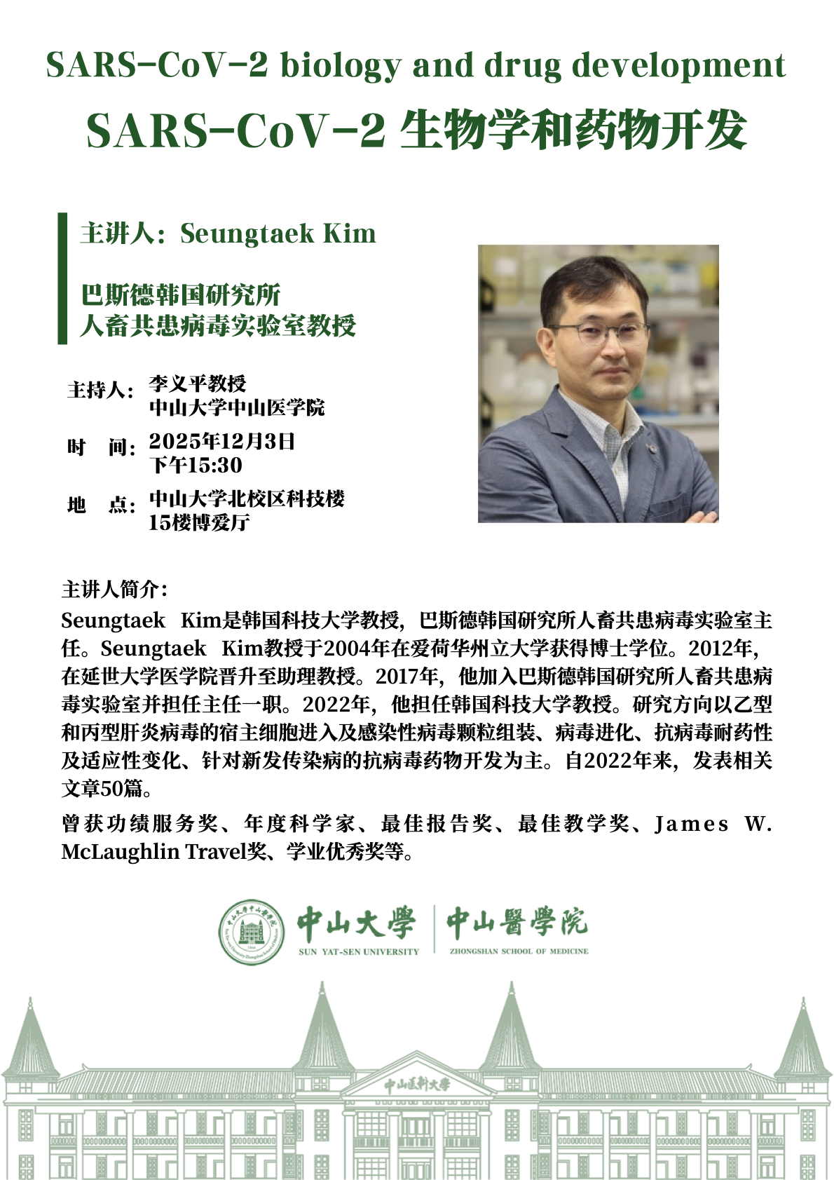 导航痕迹 首页 科学研究 学术讲座 SARS-CoV-2 biology and drug developmentSARS-CoV-2 生物学和药物开发 科学研究 科研通知 学术讲座 科研平台 办理指引 SARS-CoV-2 biology and drug developmentSARS-CoV-2 生物学和药物开发 发布人:张玉琦 发布日期:2025-12-02