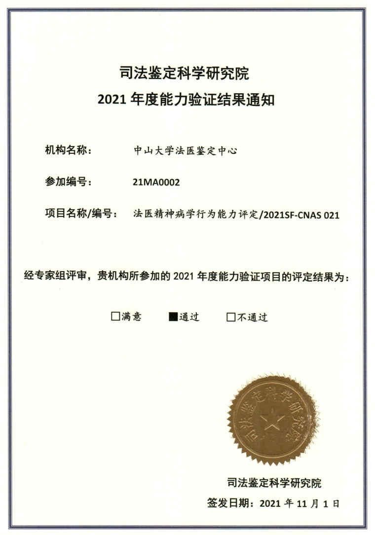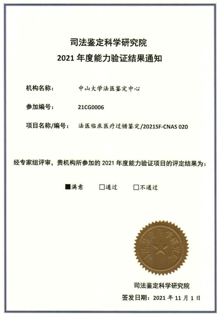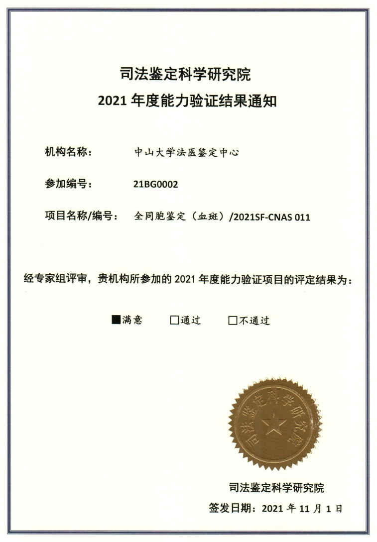 2021年度能力验证结果