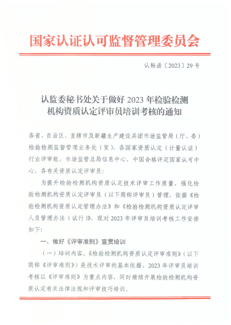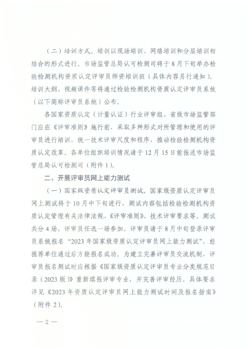 关于做好2023年检验检测机构资质认定评审员培训考核的通知