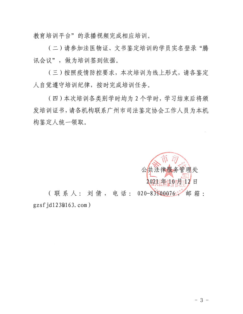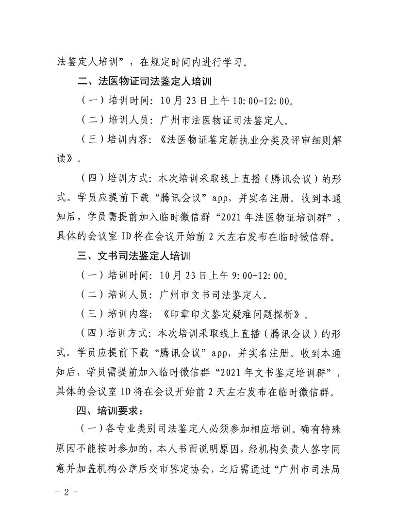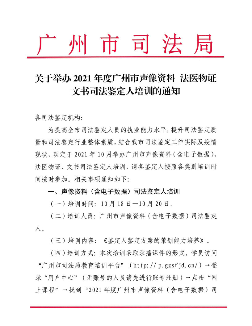 关于举办2021年度广州市声像资料法医物证文书司法鉴定人培训的通知