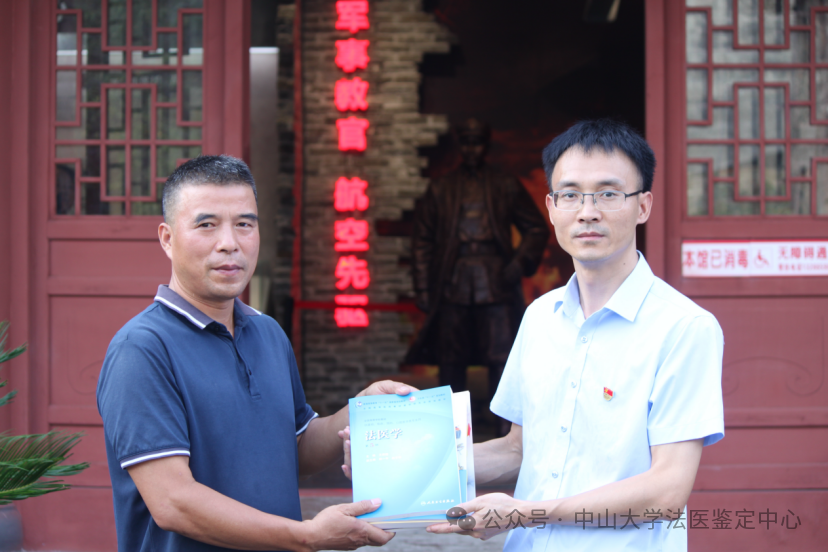 教育学习活动结束后,支部向连州市东陂镇社区(纪念馆所在地)捐赠了一批精选书籍,涵盖法医学专著、医学教材、民法典及涉农法律法规等。希望可以借由这批书籍为乡村补充紧缺的医法教育资源,助力法治意识在基层生根;也向当地宣传医学、法医学和法学专业,助力学校和学院相关专业的未来招生。社区支书郑重接过书籍,表示这是惠及群众特别是青少年的宝贵精神财富,承诺将科学管理、广泛传阅,推动知识薪火照亮乡野。