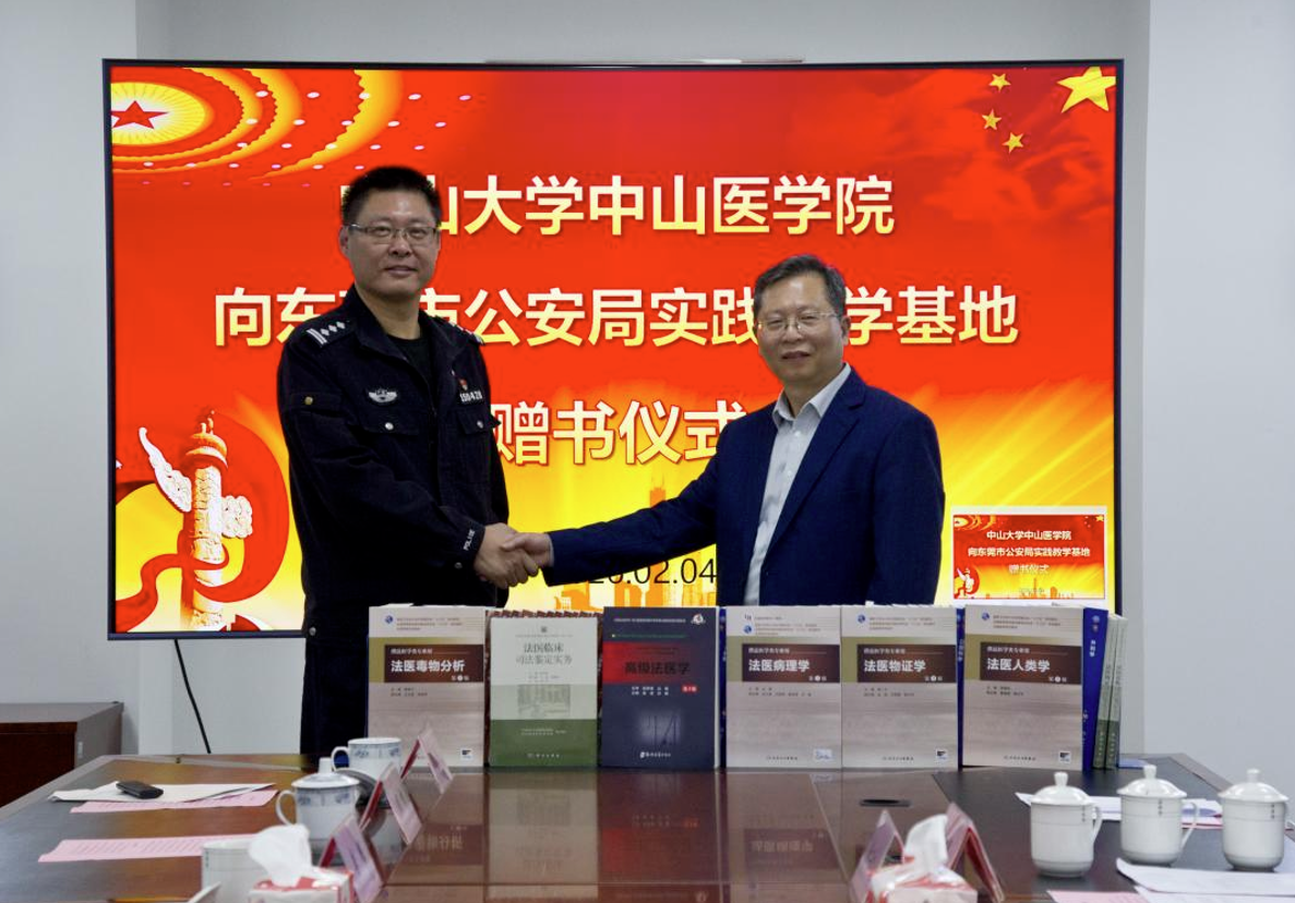 交流研讨环节,双方围绕校警协同育人模式创新达成多项共识,同时期待在科研项目合作、技术人才培训等方面取得新突破,实现校警资源共享、合作共赢。赵虎主任代表法医学系向基地赠送了最新版临床医学与法医学专业教材与科研专著,为带教工作提供学术支持。