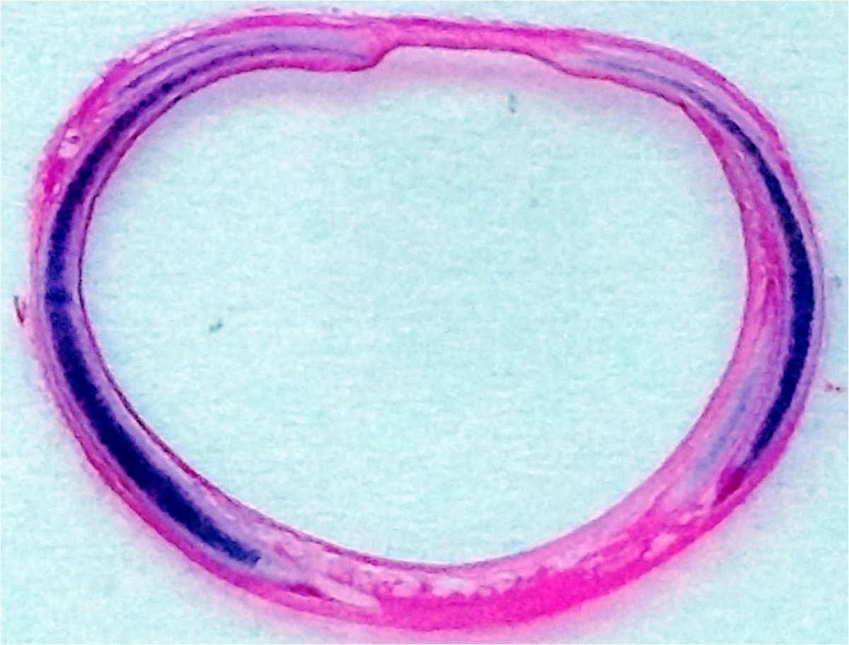 导航痕迹 首页 馆藏标本 组织学与胚胎学标本 馆藏标本 人体解剖学标本 组织学与胚胎学标本 病理学标本 人体手绘 微生物学标本 组织学与胚胎学标本 包括人体组织学和胚胎学的标本,根据人体的不同器官组织进行分类展示人体的内部结构,胚胎不同时期的发生发育的过程。 组织来源:猫;组织名称:脑垂体;染色方式:HE染色。本图片为低倍镜下猫脑垂体HE染色整体光镜图,脑垂体整体结构完整,无皱褶与裂痕,各层组织成分染色鲜艳、清晰。 组织来源:猫;组织名称:脑垂体;染色方式:高碘酸-无色品红-橙黄G染色。本图片为高倍镜下猫脑垂体高碘酸-无色品红-橙黄G染色光镜图,其中,嗜酸性细胞胞质内颗粒呈橙黄色,嗜碱性细胞胞质内颗粒呈红紫色,嫌色细胞胞质呈浅灰蓝色或无色,胞核呈蓝褐色,红细胞呈鲜橙黄色。 组织来源:兔;组织名称:心脏窦房结;染色方式:mallory三色染色法。本图为家兔心脏窦房结mallory三色染色光镜图,显示胶原纤维、神经纤维呈亮绿色,心肌纤维呈红色,细胞核呈蓝黑色,且能清晰显示窦房结起搏细胞和移行细胞。 组织来源:狗;组织名称:气官;染色方式:HE染色。本图片为低倍镜下狗气管HE染色整体光镜图,气管整体结构完整,无皱褶与裂痕,各层组织成分染色鲜艳、清晰。 组织来源:狗;组织名称:气官;染色方式:HE染色。本图片为高倍镜下狗气管HE染色黏膜与黏膜下层部分光镜图,黏膜层细胞结构典型、可见纤毛细胞、杯状细胞及其它各种细胞,粘模下层胶原纤维等染成红色,周边有成纤维细胞等。 组织来源:小鼠;组织名称:胰腺;染色方式:改良醛品红- 丽春红法染色法。本图片为高倍镜下小鼠胰腺组织胰岛细胞改良醛品红- 丽春红法染色光镜图,其中,A细胞呈朱红色;B细胞呈紫蓝色;D细胞、胶原纤维呈淡绿色。无共染且颜色鲜明,层次清楚,结构清晰,易于观察。