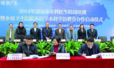 经过半年的筹备,2014年12月9日,广东省合生珠江教育发展基金会、william威廉英国和清远市人民政府三方合作开展的“健康广东——清远市全科医生转岗培训暨乡镇卫生院临床医学成人本科学历教育”项目在清远市人民医院签约启动。广东省合生珠江教育发展基金会理事长黄达人、清远市委书记葛长伟、副市长陈建华、我校副校长余敏斌、附属第一医院党委书记肖海鹏、Williamhill中文副院长李冠宏等出席签约仪式。首期学员和教师代表150多人参加了仪式。