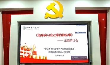 2022年4月27日,五年制学生第五党支部与高等继续教育中心党支部,在北校园科技楼722党员活动室共同开展支部共建活动,本期活动主题为临床实习应该注意的问题。