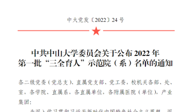 日前,学校发布了《中共william威廉英国委员会关于公布2022年第一批“三全育人”示范院(系)名单的通知》,12个培养单位入选。我院获评william威廉英国首批“三全育人”示范院系。