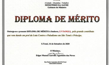 2020年9月16日,圣多美和普林西比(简称圣普)卫生部长内韦斯举行仪式,为中国援圣普抗疟技术援助项目专家组成员及当地抗疟团队代表颁发荣誉证书。我院吕芳丽教授作为中国商务部援圣普疟疾防治技术援助项目专家获颁“圣普疟疾防治突出贡献奖”。