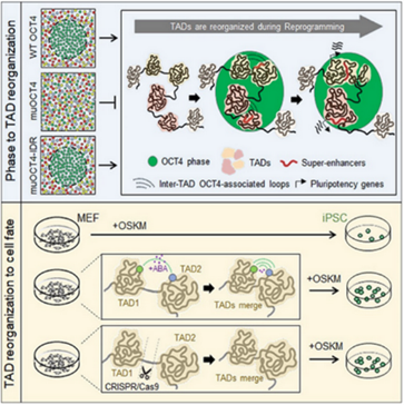 2021年5月25日,来自Williamhill中文的丁俊军实验室在Cell Stem Cell上发表了题为 Phase separation of OCT4 controls TAD reorganization to promote cell fate transitions 的文章,首次阐明了关键转录因子OCT4通过相分离(phase separation)机制调控TAD重组以推动体细胞重编程的进行。该研究是第一篇阐述相分离机制调控染色质高级结构以推动细胞命运转变的文章。
