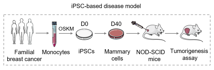 建立能模拟人类疾病发生的体外模型一直是肿瘤研究的核心挑战。乳腺癌作为女性高发恶性肿瘤,其早期发生机制研究长期受限于缺乏人源化模型研究体系。传统细胞系、类器官或异种移植模型难以重现从正常细胞向癌变的渐进过程,尤其对遗传性乳腺癌(如BRCA1突变携带者)的早期恶性转化机制解析不足。